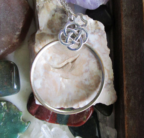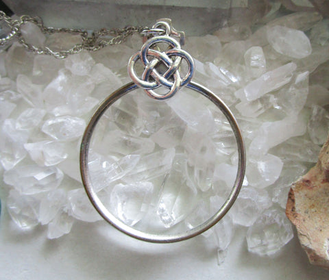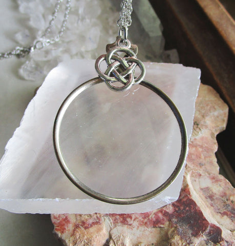 Antique Glass Monocle Magnifier Celtic Knot Pendant Necklace