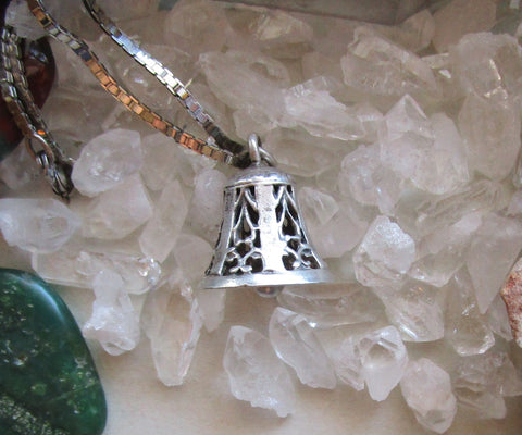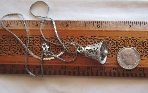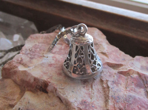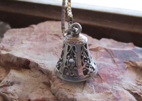 Sterling Silver Filigree Bell Vintage Pendant Necklace